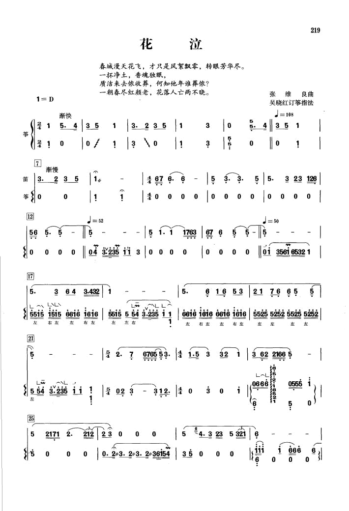 - [笛子谱,古筝谱] 花泣 笛 筝