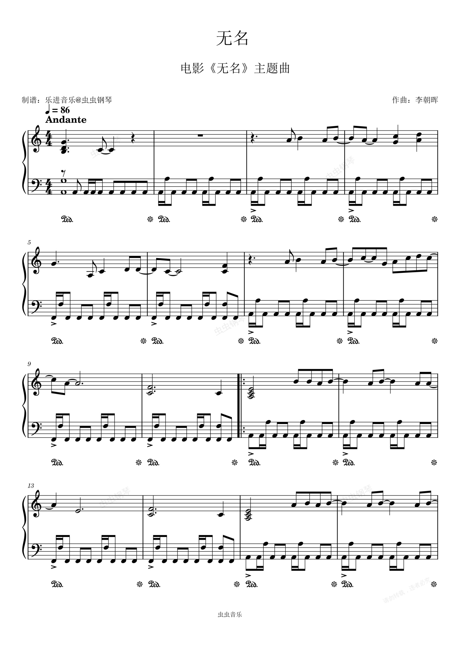 钢琴谱:《无名》王一博 还原版