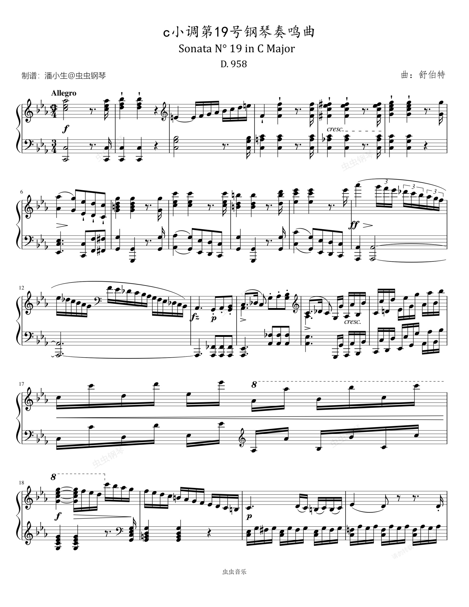 钢琴谱:舒伯特 c小调第19号钢琴奏鸣曲, D.958 原版 Piano Sonata in C minor Schubert