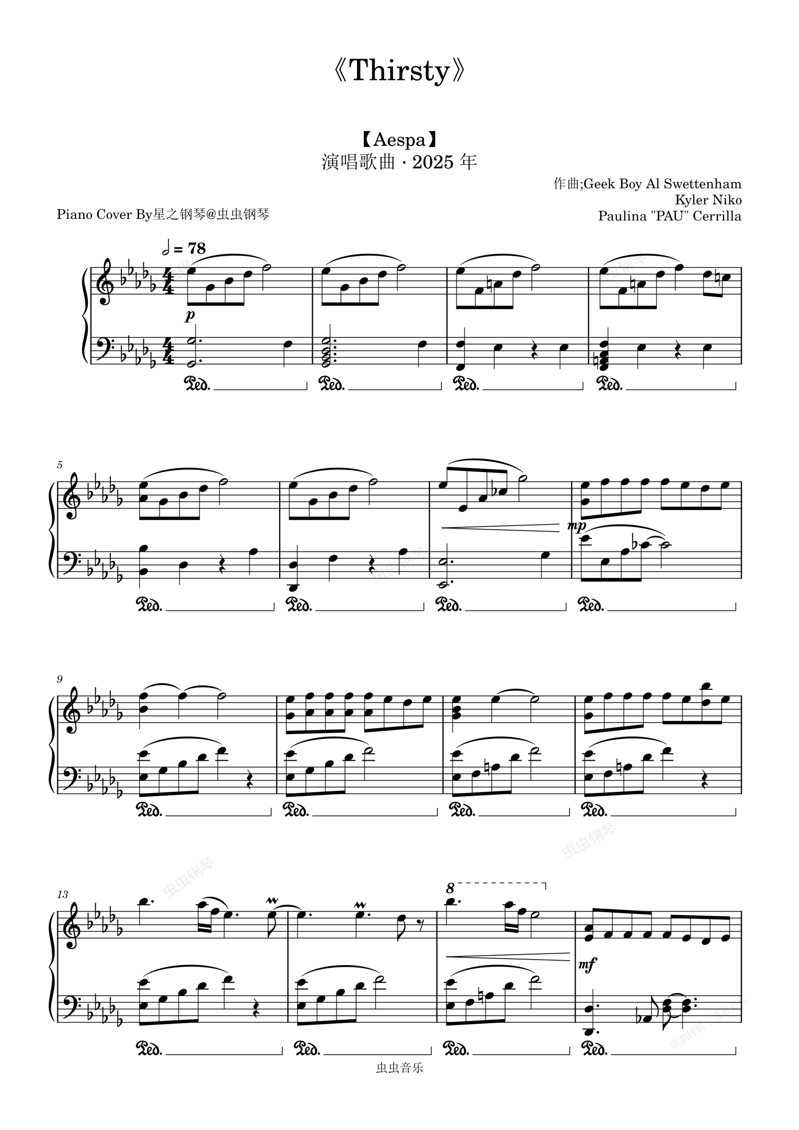 钢琴谱:【aespa】《Thirsty》钢琴还原独奏版~星之钢琴~