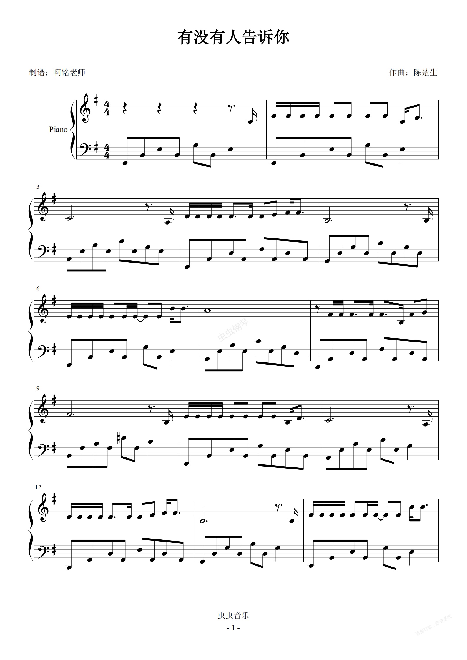 钢琴谱:有没有人告诉你 G调简易